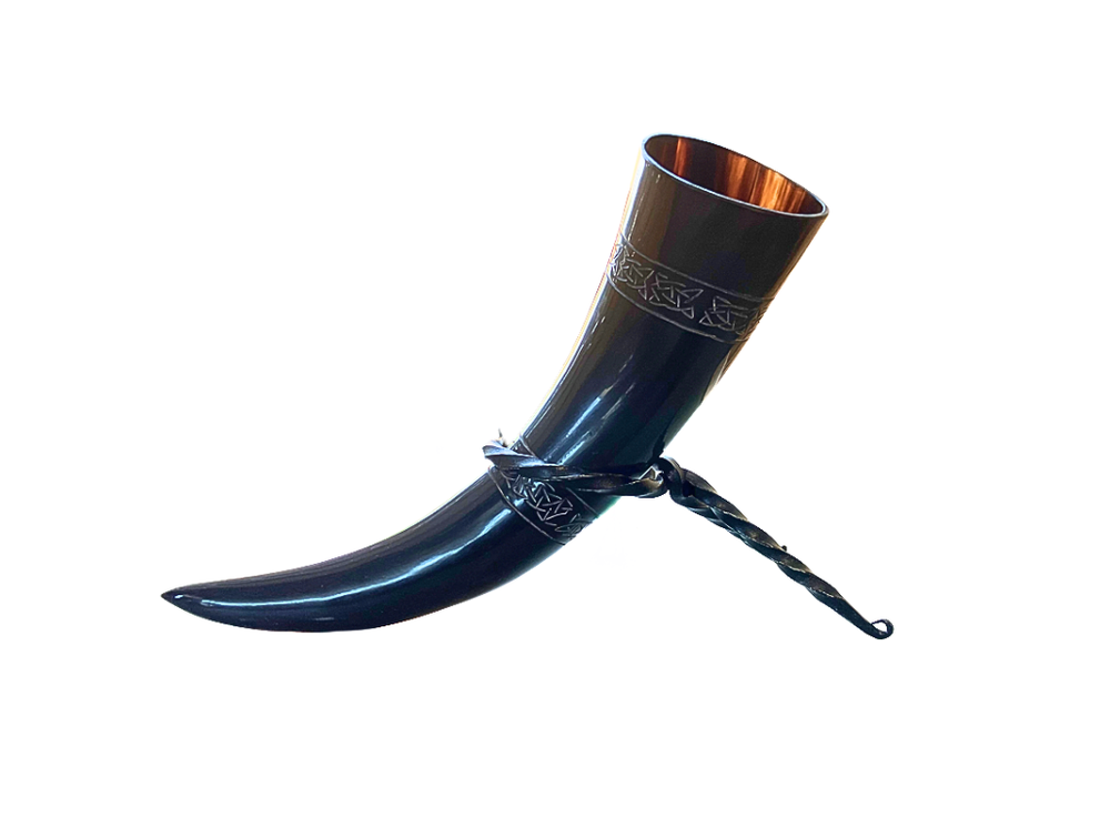 L’interno del corno è rivestito con materiale idoneo per alimenti, ideale per gustare birra, idromele o vino.