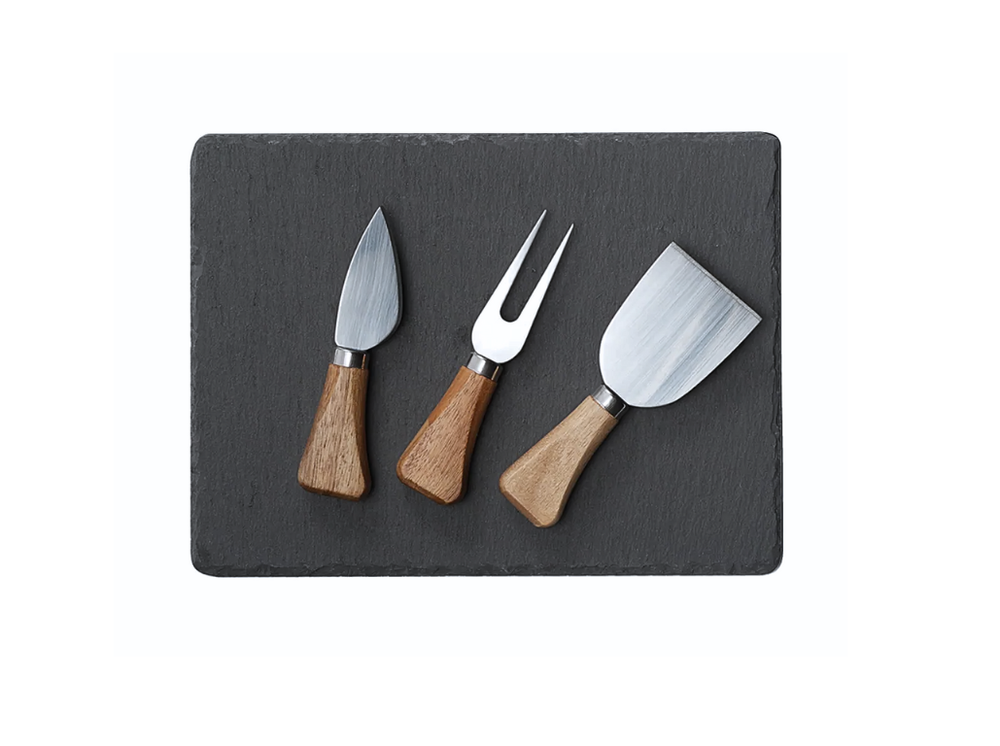 - Contenuto: 4 pezzi (coltello per parmigiano, coltello per formaggi duri, forchetta, piastra in ardesia)