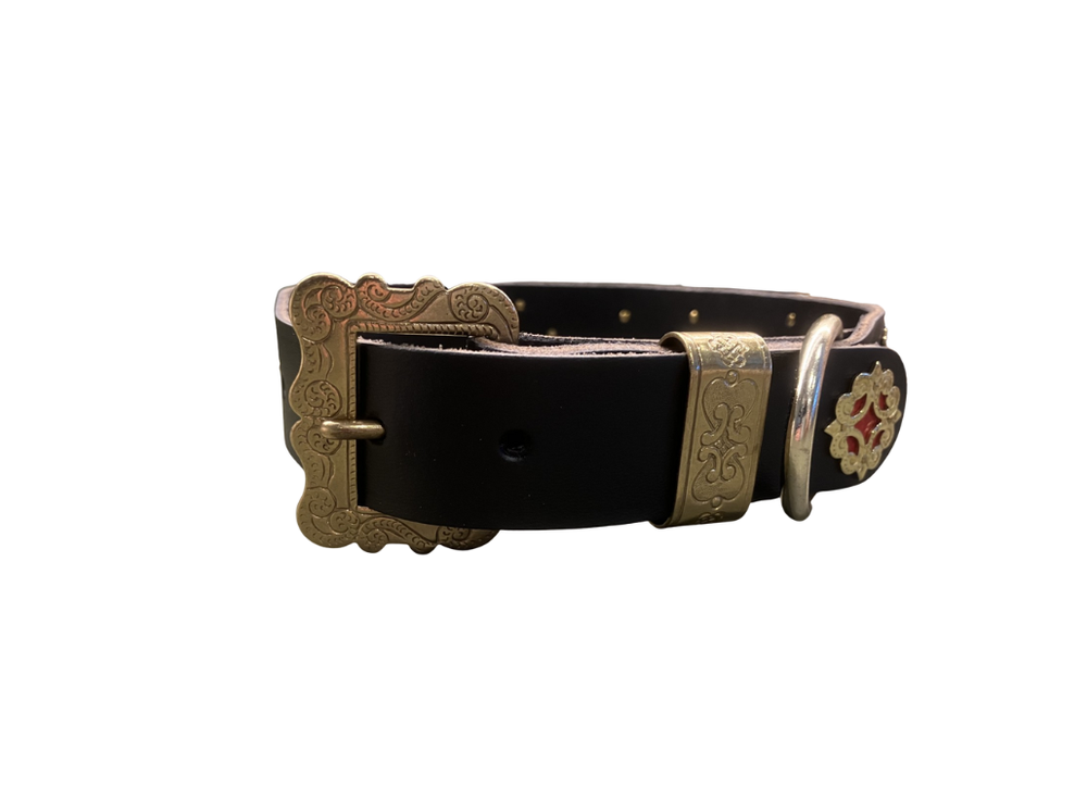 Hundehalsband aus schwarzem Leder mit goldenen Appenzeller-Motiven, 4 cm breit, 65–75 cm lang